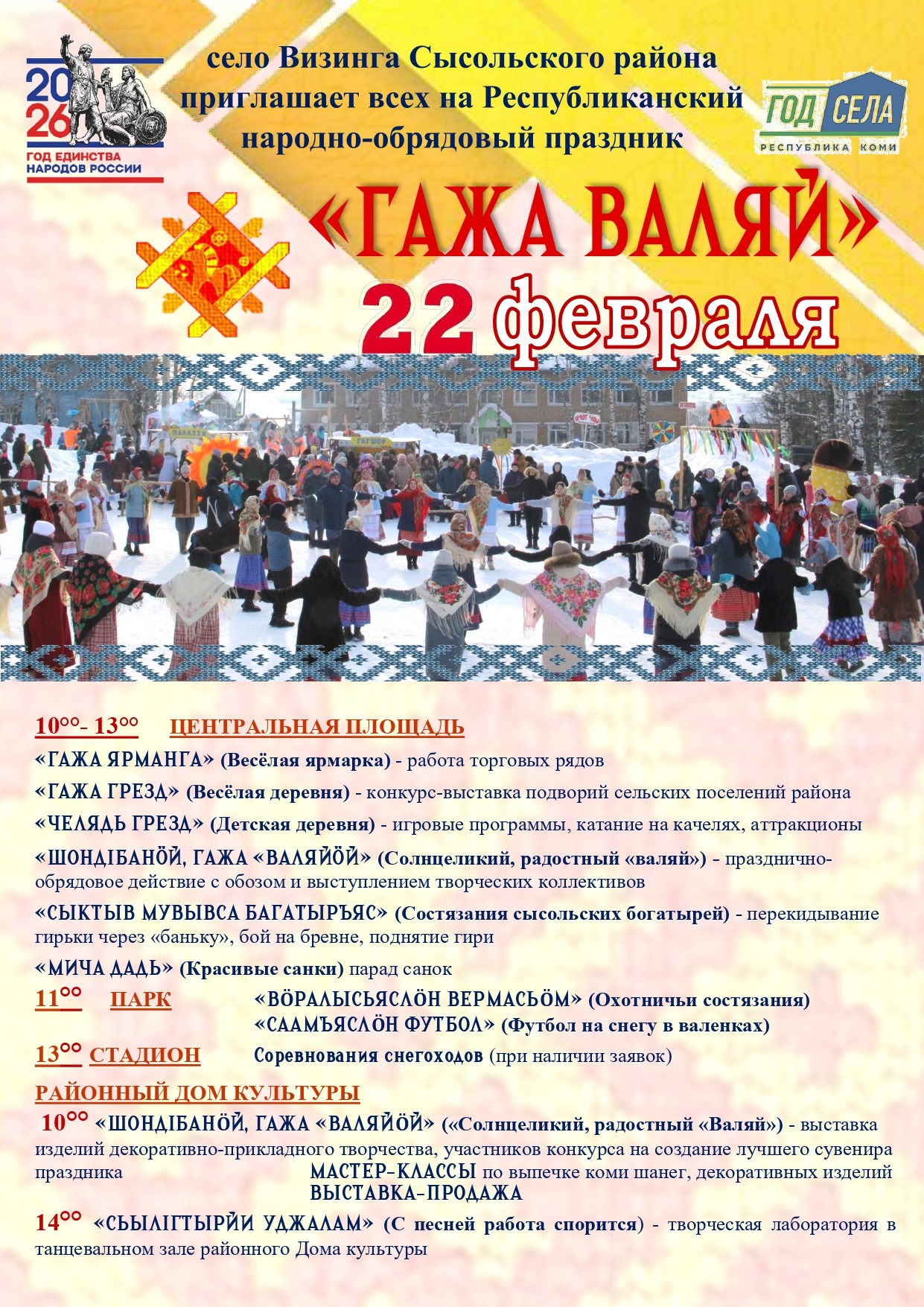 Мы рады приветствовать вас на сайте, посвященном культурной жизни Сысольского района! Мы делаем одно общее дело, создаем условия для обеспечения доступности услуг культуры для всех слоев и групп населения, для сохранения стабильности, взаимопонимания и гражданского согласия между представителями всех национальностей, проживающих на территории района, а также формирования и поддержки позитивного имиджа района.